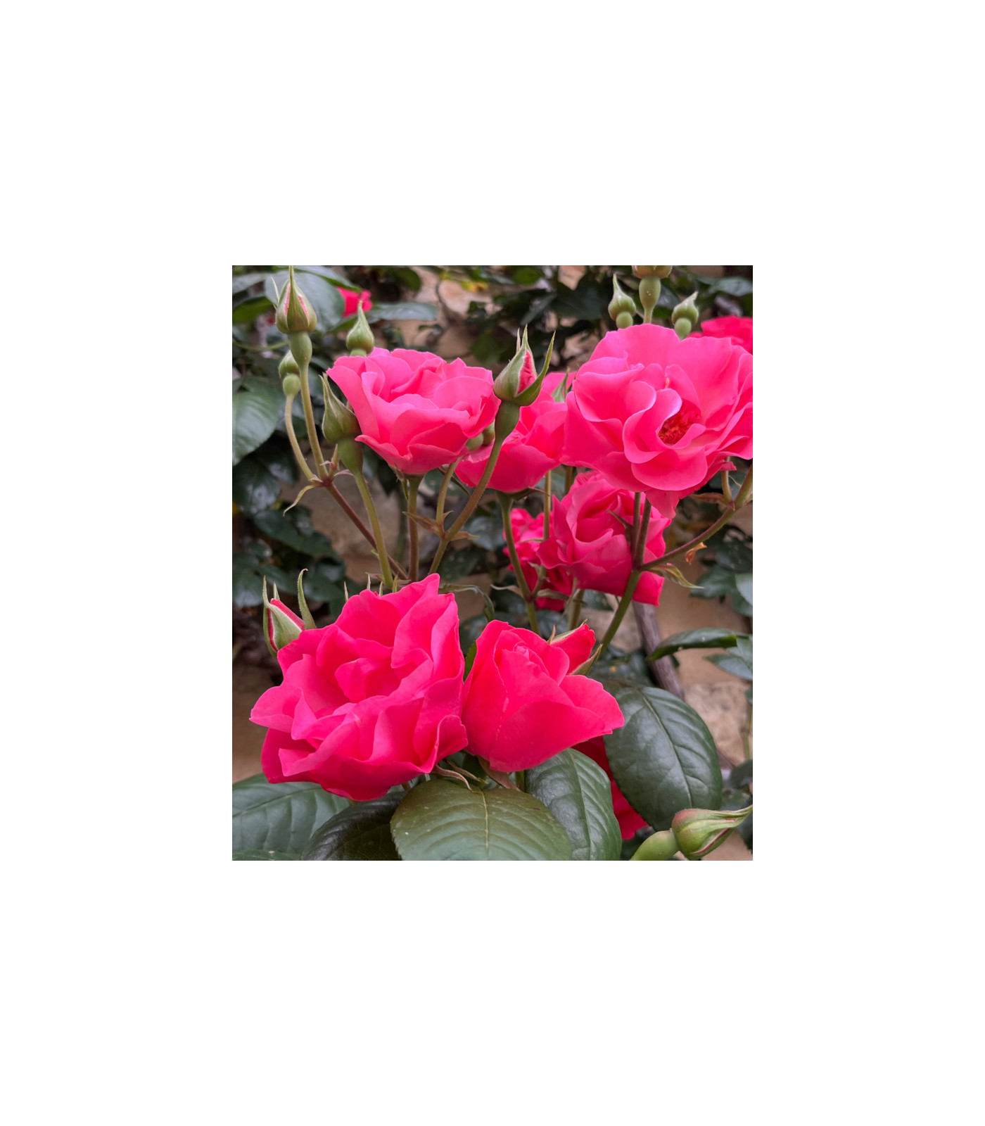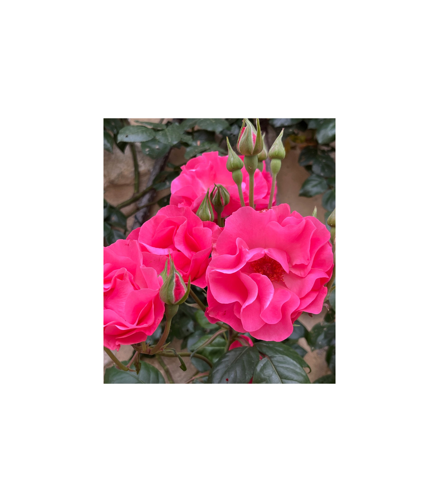 Ses grandes fleurs semi-doubles, rose soutenu, en grappes, s’harmonisent très bien avec son beau feuillage brillant. La végétation est abondante et sa floraison longue et remontante. Un choix remarquable pour parcs et jardins.